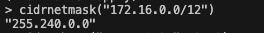 cidrnetmask 내장 함수는 CIDR 표기법으로 주어진 IPv4 주소를 서브넷 마스크 주소로 변환하는 함수입니다.